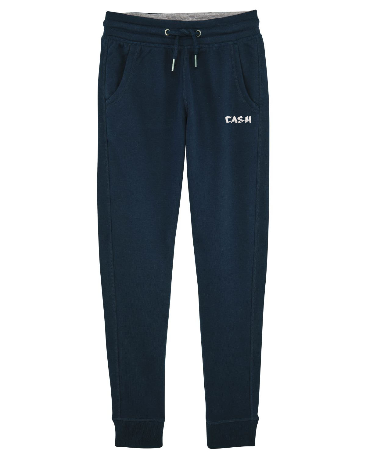 Détails cash brodé au niveau du bas du tibia, jambe gauche